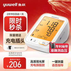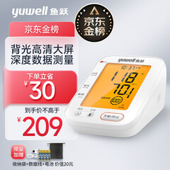 ¥206.00鱼跃(yuwell)医用电子血压计血压仪 家用测高血压测量仪 语音指导锂电池充电背光大屏幕680AR【医用准级】