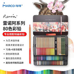 ¥249.00马可(MARCO)72色彩铅+8支功能笔 油性彩色铅笔绘画套装美术设计手绘专用铁盒装配笔刨 雷诺阿系列3100-80TN
