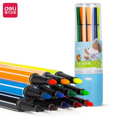 ¥6.00得力(deli)12色可洗水彩笔 儿童画画彩色涂色颜色笔美术画材 收纳筒33985-12