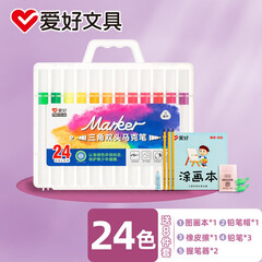 ¥36.80爱好(AIHAO) 三角双头马克笔24色儿童美术绘画填色速干学生水彩笔套装 双头马克笔24色