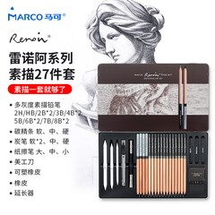 ¥119.00马可(MARCO)素描套装 铅笔炭笔炭条绘图27件套 雷诺阿系列专业美术2B/4B/6B/13支绘画工具套装铁盒装