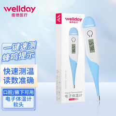 ¥21.90维德(WELLDAY)电子体温计 婴幼儿童宝宝温度计非体温枪口腔腋下医用体温表硬头/软头 【浅蓝款软头】速测电子体温计