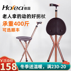 ¥158.00德国HOEA老人拐杖座椅四角脚拐棍带凳子的手杖老年人轻便拐扙板凳防滑折叠可坐便携带座椅带灯轻巧捌杖 812D暖咖色人体工学手把(内置灯 带脚垫、座套)