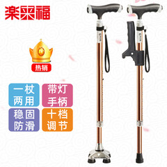 ¥119.00乐来福(REALLIFE)老人拐杖 四脚 拐棍 助行助步防滑四角铝合金可伸缩带灯手杖S02YBZ