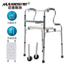 ¥239.00迈德斯特 助行器 老人四脚拐杖铝合金轻便折叠椅残疾老人康复行走辅助器助步器【带轮两用+坐板】 ZX03-TLB