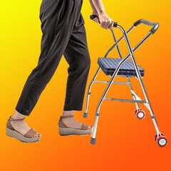 ¥145.00合佳 hejia医用老人助行器拐杖康复辅助残疾人行走锻炼器可折叠助力助步器高度可调四脚防滑带轮带座板