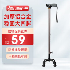 ¥59.00巴元 加厚铝合金四角拐杖防滑拐棍可伸缩高低可调老人拐杖 拐棍 老人助行器 BYS2401