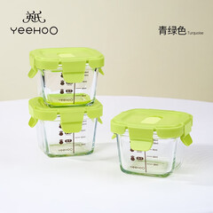 ¥109.90英氏(YEEHOO)辅食盒新生婴儿玻璃保鲜盒冷冻冰格密封储存宝宝辅食碗可蒸煮 苹果绿(三个装)