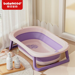 ¥189.00世纪宝贝(babyhood)浴盆婴儿 可折叠宝宝大号洗澡盆坐躺两用小孩新生儿童用品 BH-326 【水塞感温 单盆】木槿紫