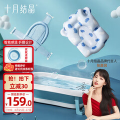 ¥198.00十月结晶婴儿洗澡盆新生儿大号可折叠宝宝浴盆格洛里蓝浴盆浴网浴垫3件套