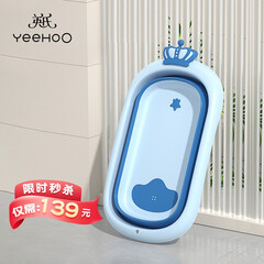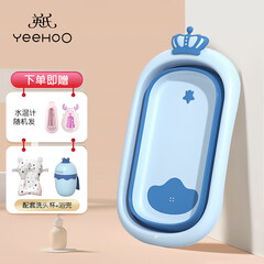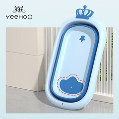 ¥209.00英氏(YEEHOO)浴盆婴儿洗澡盆新生儿童宝宝折叠沐浴桶家用坐躺加大加厚0-7岁 皇冠浴盆 蓝色