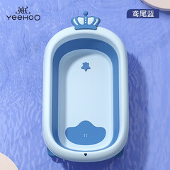 ¥199.00英氏(YeeHoO)新生儿浴盆宝宝洗澡盆大号婴儿折叠浴盆可坐可躺浴盆 皇冠浴盆【蓝色】