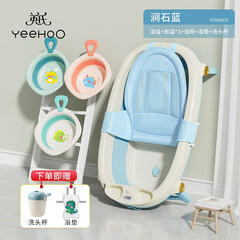 ¥308.00英氏(YEEHOO)新生婴幼儿洗澡盆抗菌宝宝浴盆可坐折叠浴桶大号儿童小孩用品 涧石蓝+洗浴用品+洗头杯
