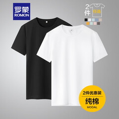 ¥89.00罗蒙(ROMON)两件装男士纯棉短袖t恤夏季圆领白体恤T纯色上衣服打底衫男装 【黑色+白色】 L/175(推荐体重125-140斤)