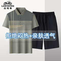 ¥128.00老爷车爸爸夏装套装短袖t恤裤子两件男士中老年男装父亲节实用礼物衣服 YT232209812卡其色 175(上衣+短裤)