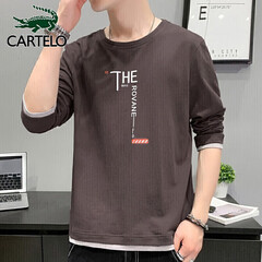 ¥118.00卡帝乐鳄鱼(CARTELO)长袖T恤男2023春季韩版圆领T恤套头打底衫衣服宽松百搭上衣男装