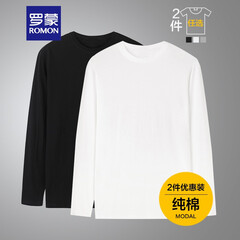 ¥89.00罗蒙(ROMON)两件装男士纯棉短袖t恤夏季圆领白体恤T纯色上衣服打底衫男装 【黑色+白色】长款 4XL/195(推荐体重185-200斤)