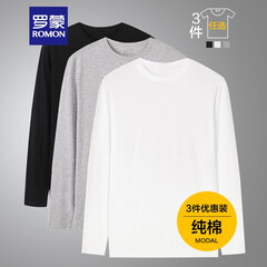 ¥129.00罗蒙(ROMON)两件装男士纯棉短袖t恤夏季圆领白体恤T纯色上衣服打底衫男装 【黑色+白色+灰色】长款 L/175(推荐体重125-140斤)