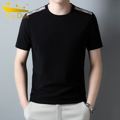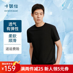 ¥159.00十如仕T恤男短袖 时尚休闲春夏季男士纯色圆领半袖纯棉吸湿速干T02 黑色 L(175/100A)