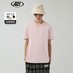 ¥59.00A21男装简约短袖T恤男纯色男士打底情侣潮女新疆棉浅粉红 170/84A/M