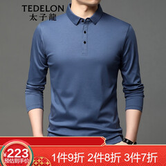 ¥319.00太子龙 纯棉T恤男 2022长袖中青年翻领亲肤丝光棉打底衫 YY22500 中蓝 170