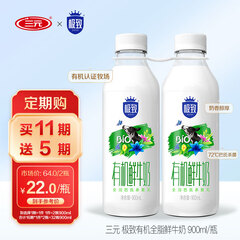 ¥64.00三元 极致有机 全脂鲜牛奶 900ml/瓶x2 巴氏杀菌鲜牛奶家庭装 定期购
