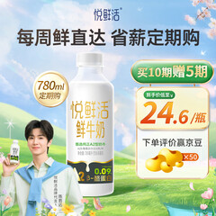 ¥36.90悦鲜活鲜牛奶 定期购 A2β-酪蛋白780ml家庭装【陈哲远推荐】低温鲜奶