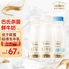 ¥79.90每日鲜语(SHINY MEADOW) 巴氏杀菌鲜牛奶 全脂250ml*7瓶赠4.0鲜牛奶*1瓶