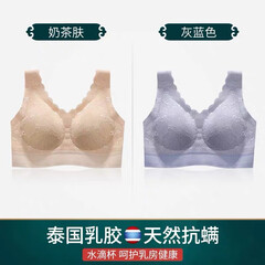¥92.00瑞朝凰 泰国无痕蕾丝乳胶内衣胸垫文胸聚拢无钢圈防震跑步运动美背胸罩 奶茶肤+雾镜灰【蕾丝2件装】 XXL码 130-140斤推荐85D/90ABCD