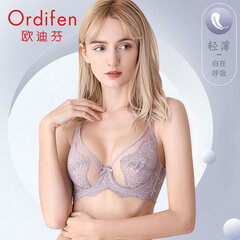 ¥159.90欧迪芬(Ordifen)大码文胸薄款内衣女大胸显小轻盈透气女士内衣性感蕾丝薄杯胸罩 雾紫色XB8358 38/85C
