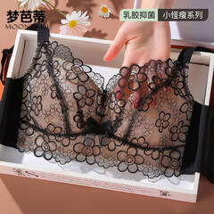 ¥129.00梦芭蒂(Moonbadi)【设计师款】乳胶文胸无钢圈内衣女大胸显小薄杯上托胸罩清香微甜 梦语生花-黑色薄杯 75B