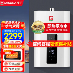 ¥2399.00樱花SAKURA 零冷水燃气热水器水气双调智能恒温天然气热水器直流增压循环泵即开即热全屋热水巡航 JSQ30-A106【16升零冷水】