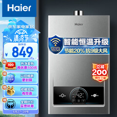 ¥849.00海尔(Haier)12升燃气热水器天然气水气双调恒温五重净化健康ECO节能开机自检多重安防家用JSQ22-12UTS(12T)