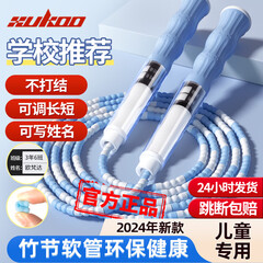 ¥8.90炫酷竹节跳绳儿童小学生幼儿园3-5-6-7岁一年级初学考试训练专用神子 学校推荐-可写姓名-蓝 【可调长短】