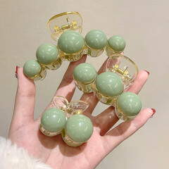 ¥9.90大号抓夹亚克力珍珠珠春夏低丸子头后脑勺发夹蓬松发夹 雾霾绿三件套