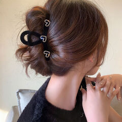 ¥7.90梦君宸爱心水钻丝绒抓夹大号夹子头饰发夹后脑勺盘发女发饰高级感鲨鱼夹 三颗爱心抓夹