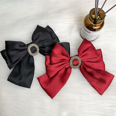 ¥9.90蝴蝶结发夹大号发饰顶夹布艺韩头饰版绸缎弹簧夹镶钻简约时尚饰品 3#星耀黑+胭脂红