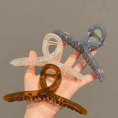¥5.90美丽义饰 大号网红抓夹亚克力盘发优雅气质鲨鱼夹后脑勺头饰发卡 16#网红3件装(咖+绿+灰)
