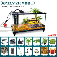 ¥251.00爬将军 乌龟缸特大号 玻璃造景晒台草龟大型养龟箱盆 别墅家用生态龟缸 43cm缸【餐三】双流水晒台13件套