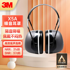 ¥278.003M 隔音耳罩X5A 噪音耳罩 非导电式头带37db可搭配降噪耳塞黑色 1副装