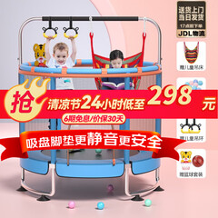 ¥398.00曼迪卡威(Mdikawe)蹦蹦床室内家用儿童宝宝弹跳床小孩玩具成人健身带护网跳跳床 扶手单杠款蓝/直径1.4M承重700斤 加厚护网/吸盘静音防滑腿