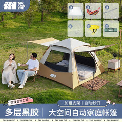 ¥428.00TANXIANZHE 探险者帐篷户外全自动速开加厚防晒黑胶灰胶防帐便携式露营折叠 【灰胶款】3-5人遮阳套餐-卡其