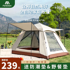 ¥359.00菲勒曼 帐篷户外露营便携折叠装备多人儿童家庭野餐全自动遮阳防晒装备 涂银防晒3-4人【防潮垫+野餐垫】