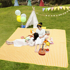 ¥9.98户外旅行野餐垫防潮午睡坐垫郊游野炊防水地垫 黄格子 150cm*100cm