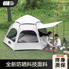 ¥398.00探险者(TAN XIAN ZHE) 户外帐篷露营公园野营家庭自动便携遮阳防雨黑胶防晒大六角帐篷 升级灰胶六角帐篷【卡其色】
