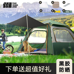 ¥368.00TANXIANZHE探险者帐篷户外露营速开黑胶防晒公园野营便携防雨遮阳大空间套装 黑胶款3-5人防潮垫+小坐垫