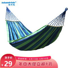 ¥29.00安丹迪(Adandyish)单人月牙弯棍防侧翻吊床 户外露营休闲加厚加宽帆布吊床弯木 蓝条