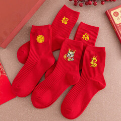 ¥22.90文枝旅行装备 1本1命1年1红1袜1子男1女同款1中1筒1袜1纯色1新1年1袜1 龙年红袜5双装【图案随机】