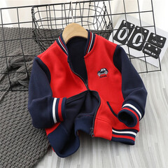 ¥109.90男童棒球服加绒中大童外套拉链衫贝壳心雨童装男童外套摇粒绒女童卫衣宝宝开衫秋冬装儿童外套 红色 150码