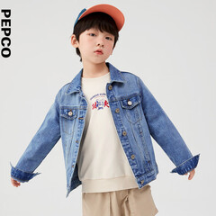 ¥199.00小猪班纳童装春秋装新款儿童上衣中大童男童牛仔外套男孩潮纽扣衫 浅蓝牛仔 130cm